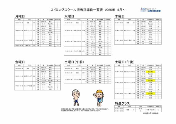 2025年度第1期(4~6月) スイミングスクール担当指導員一部変更のお知らせ